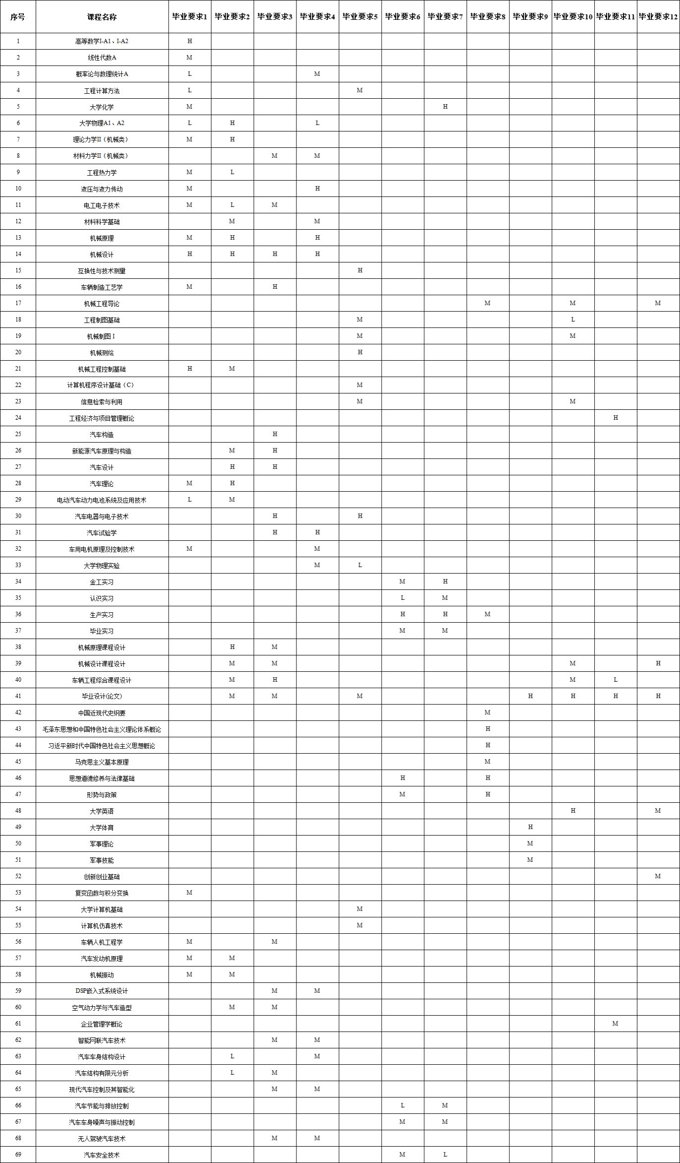 培养目标1:具有综合运用数学、自然科学和车辆工程科学知识和工程技能,能够对车辆工程领域问题进行分析和研究,能够在社会大背景与跨文化背景下成功地解决车辆工程实践问题。