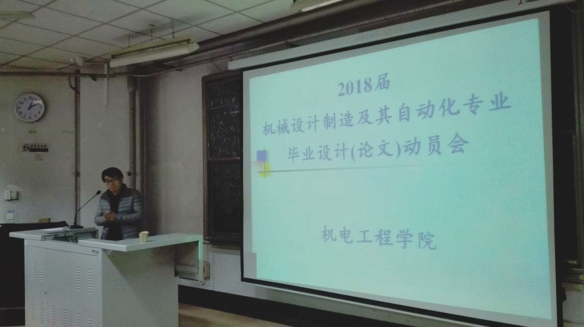2017年12月25日下午,我院在东阶108举行了2014级机械设计制造及其自动化专业本科毕业设计动员大会,机械设计制造及其自动化教研室董朝阳、张锦华、刘强、褚崴、薄相峰老师以及机械基础教研室关红明老师出席大会,动员大会由张平老师主讲。