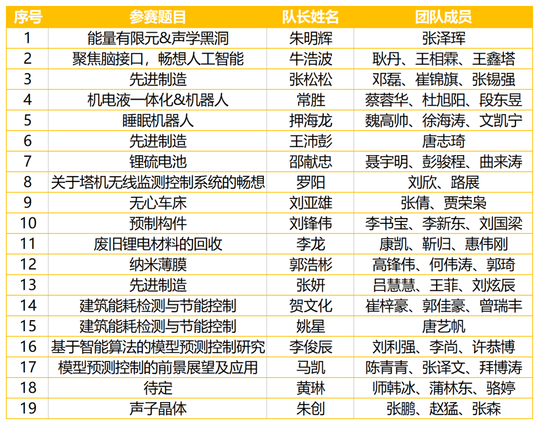 经过前期的报名工作,本次学术演讲比赛初赛最终敲定19支优秀参赛队伍。