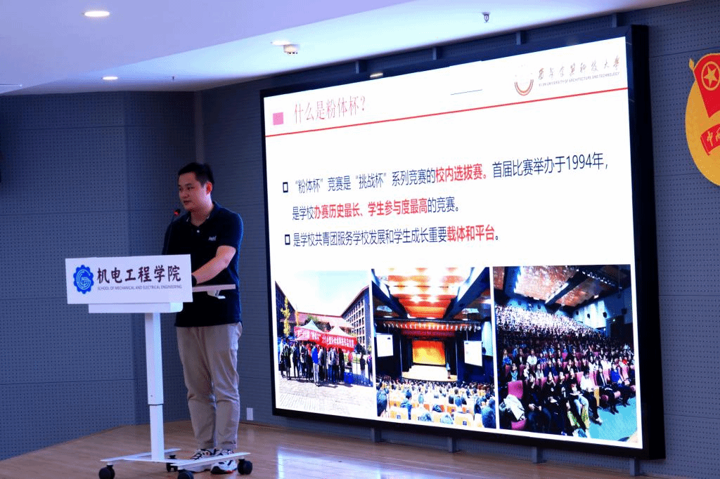 培训会第一项,张皓以“青春筑梦,科创报国”为题作报告分享。张皓讲解了“挑战杯”、“粉体杯”、“互联网+”等创新创业竞赛规程,介绍了学校、学院组织竞赛的时间节点和历届以来不断突破取得的优异成绩。他强调,青年学生应当心怀远大理想,在加强理论知识学习时,亦要注重实践和研究,实践才能真正实现科创。最后,张皓详细介绍了“寻访和传承建党百年征程中的老兵精神——一个有希望的民族不能没有英雄”挑战杯作品,并以此为例,向同学们讲解了项目计划书的撰写方法及注意要点,从选题、组建参赛团队、提高实践调研的广度和分析的深度,注意参赛论文的规范性、科学性等方面提出宝贵建议。并鼓励同学们积极学习竞赛相关知识,为取得优异的成绩打下良好的基础。