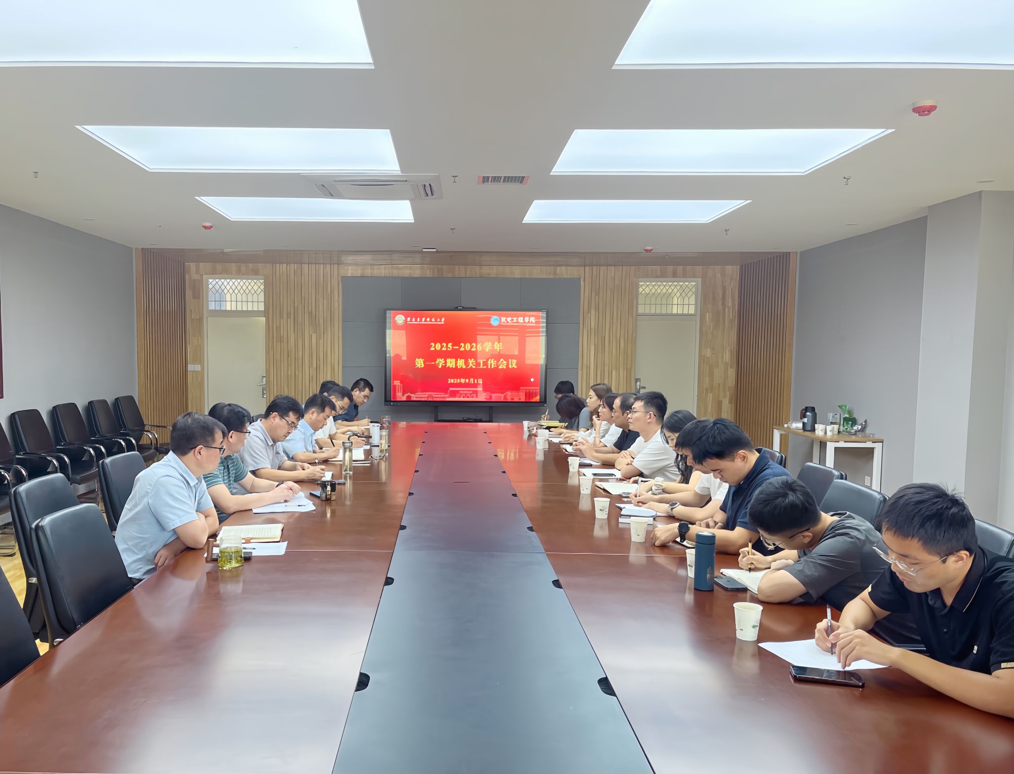 9月1日下午,雷竞技RAYBET在机电楼514会议室召开新学期机关工作部署会,雷竞技RAYBET领导班子全体成员、机关全体工作人员参会。会议由学院执行院长朱丽华主持。