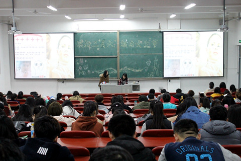 活动刚一开始就直接迎来了广大女生们最喜欢也最感兴趣的活动——“我和美丽有个约会”美容化妆讲座——由不同的女同学上台为大家介绍讲解化妆、搭配小技巧。化妆方面不仅讲解了一些小技巧还介绍了许多各式各样的化妆品,同学介绍完毕之后播放了一个化妆小技巧的小视频。在穿衣搭配方面由女工部的同学为大家带来了很详细的介绍,不仅有不同肤色该怎么选择衣服,还有不同身高不同身材的穿衣选择等等,最后还介绍了一些可以让你整个穿衣搭配锦上添花的小饰品。