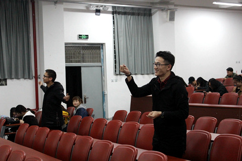 下一个游戏的名字叫做《活灵活现完美配合》,简单点来说这个游戏就是四人一组,两个人根据大屏幕上的四字成语做肢体动作,剩下的两个人背对着大屏幕根据两位同学的动作来才猜成语。这个游戏不仅考验同学们的词汇量,也考验同学们的肢体协调和每个人之间的默契,每个同学的肢体描述也为在场的每个人带来了不同的乐趣,整个会场都其乐融融!