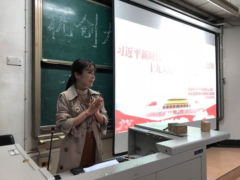 开展“不忘初心跟党走” 十九大学习宣传教育工作是贯彻落实以习近平同志为核心的党中央重要指示精神的重大政治任务,是服务党政大局、凝聚青年共识、汇聚青年力量的重要举措。西安科技大学马克思主义学院研究生董一霏同学对十九大精神作了重要解读,从十九大盛况及重大意义、十九大报告总体框架及其主要精神两个方面展开论述。准确指出十九大“新”的地方,全面系统的介绍了党的十九大报告。