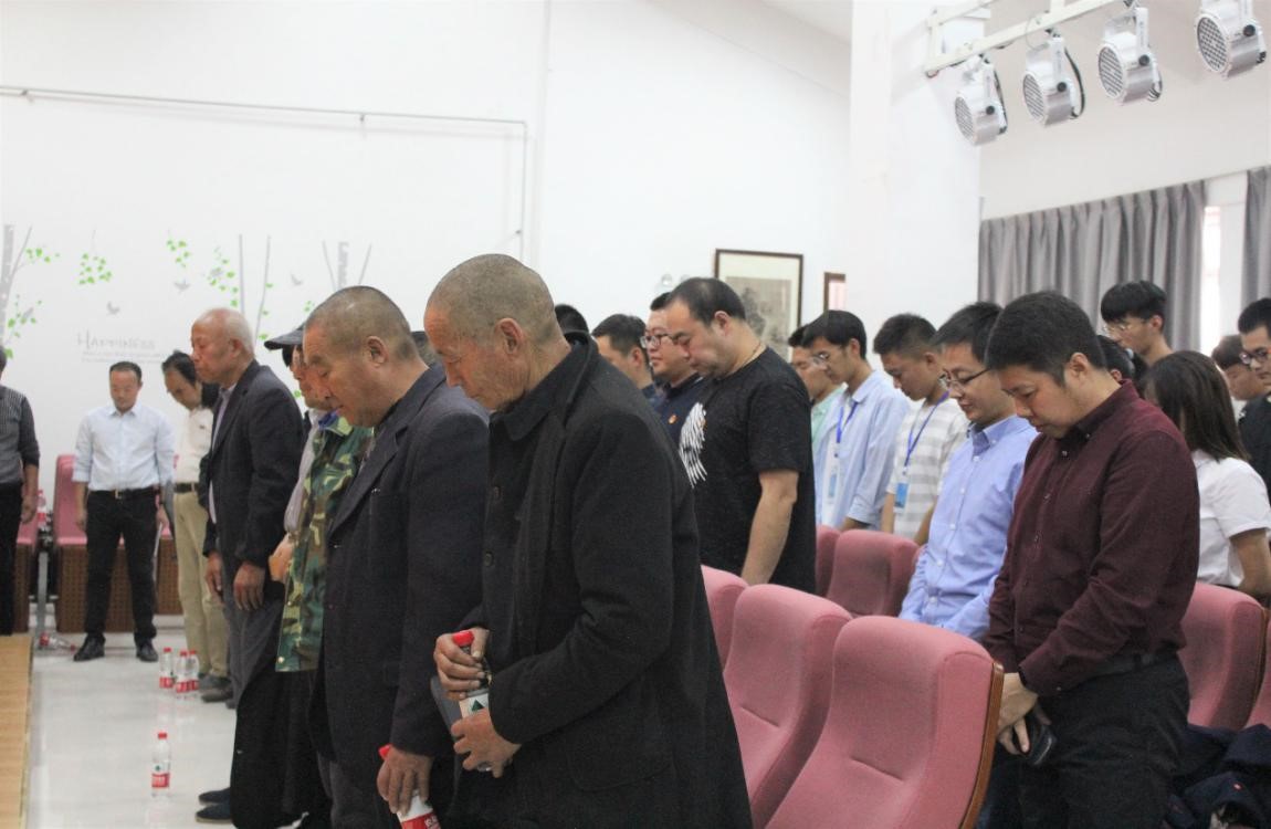 交流会开始前,参会老兵以及全体师生一同为在中国人民解放事业和共和国建设事业中英勇献身的革命英烈默哀,缅怀致意。