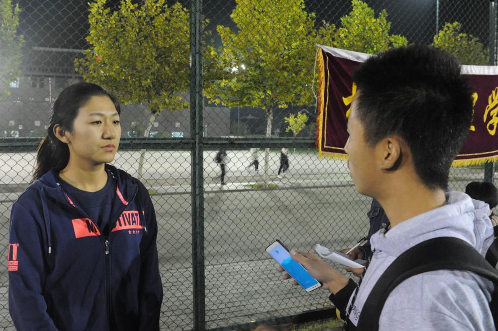 队员:我是打二传位,就是第一个球员(把球)垫起来,然后我传上去,给下个球员扣球。