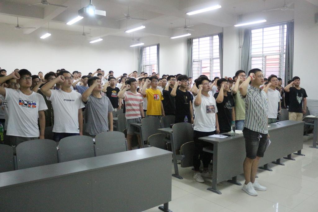 最后,机械工程1601班陈鑫炜同学带领全体学生进行诚信考试宣誓。至此,本次大会圆满结束。