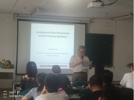 7月4日上午10点工科大楼708,美国密苏里大学功能材料实验室主任黄国良教授应邀为我院师生做了题为“Time-space variable metamaterial”的学术报告。报告会由张小龙院长主持,我院部分老师及研究生参加了本次学术报告会。