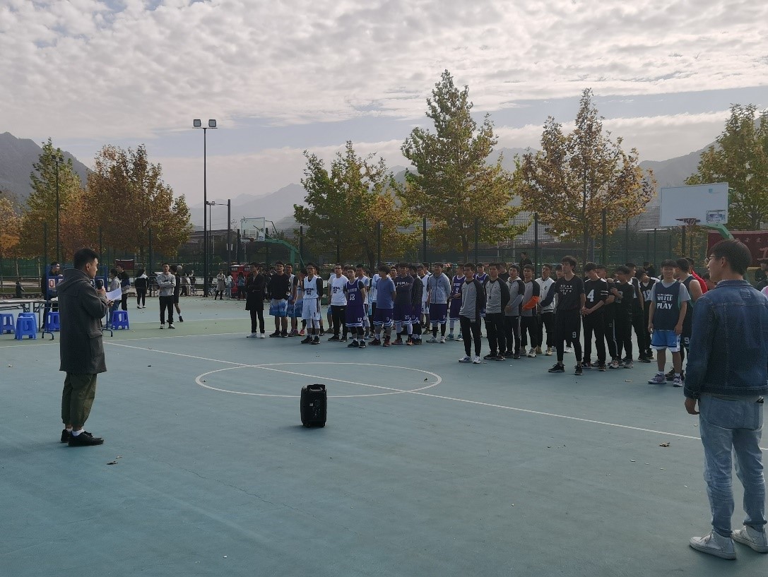 在比赛正式开始之前,主持人介绍了篮球赛队伍、项目和比赛规则,本场比赛总共有6只队伍,分别代表机电学院、信控学院、文学院、安德学院、理学院、公管学院及化工学院。
