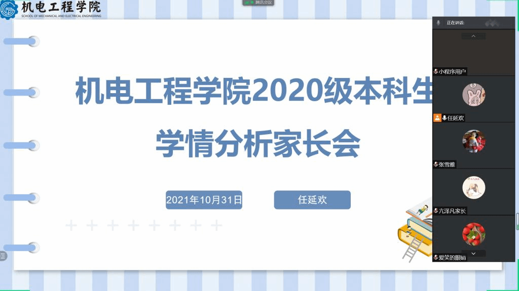 为进一步强化家校联系,凝聚育人共识,答家长之所惑,10月31日下午18时,雷竞技RAYBET2020级本科生辅导员任延欢和学生家长相聚云端,召开学情分析专题家长会。