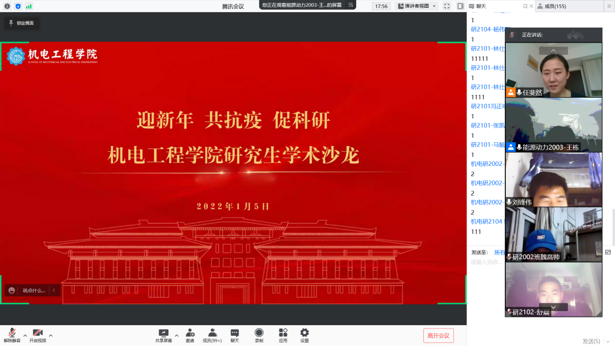 学院坚持以生为本的工作理念,将保障学生的健康安全放在防疫工作的首位,通过走访慰问、亲切关怀、畅通反馈渠道、解决实际问题、思想引领等多维度建设安全保障。学院党委副书记、副院长、纪委书记贺伟带领学工办辅导员深入学生宿舍,走访慰问学生,排查宿舍隐患,了解学生在校的点滴困难;研究生导师开展“云端同心话新年”主题座谈会,暖心回顾一年的成长进步,引导学生们在特殊时期砥砺奋进,以乐观的心态投入防疫生活,用扎实的行动提升自我;本科生各班级相聚云端,开展“聚同心·共抗疫·勇担当·展形象”网络主题班会,班主任带领学习防疫政策,分享先进人物,讲述抗疫故事,筹备班级文艺节目,引导学生从自身做起,强化责任担当、展现青年力量、坚定必胜信心;学院学生会举办“艺绽机电,情暖人间”主题线上才艺表演活动,在带给大家欢声笑语的同时,也极大地鼓舞了同学们战疫必胜的信心;学院新媒体中心为大家送上新春对联,表达彼此的守望与挂念;学院权益保障部安排志愿者定期对宿舍进行全方位消毒,保障同学们的卫生安全。细致入微的关怀,春天终会如约而至。