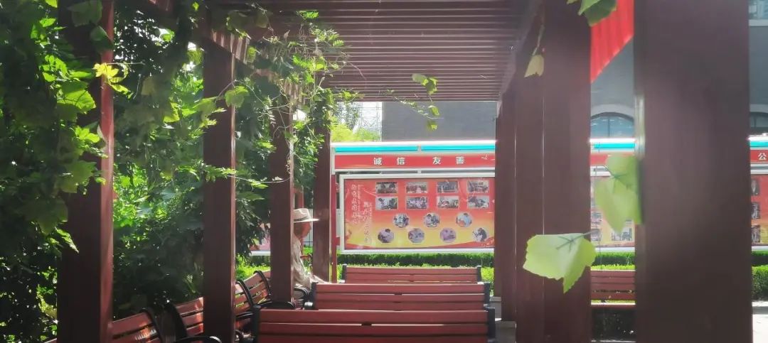 来到敬老院后的凉亭,里面静坐着四位身着深绿色军装,胸前带满金色奖章的老人,他们就是探访小组这次寻访的主人公。