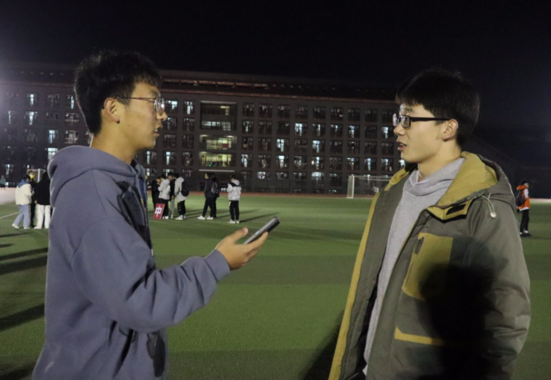 当问到郝耀扬学长对那些经过努力训练没有进三轮的同学有什么想说的时,他表示比赛的目的不是为了获得名次,而是为了强身健体,希望以后的体育运动同学们也能踊跃参与。