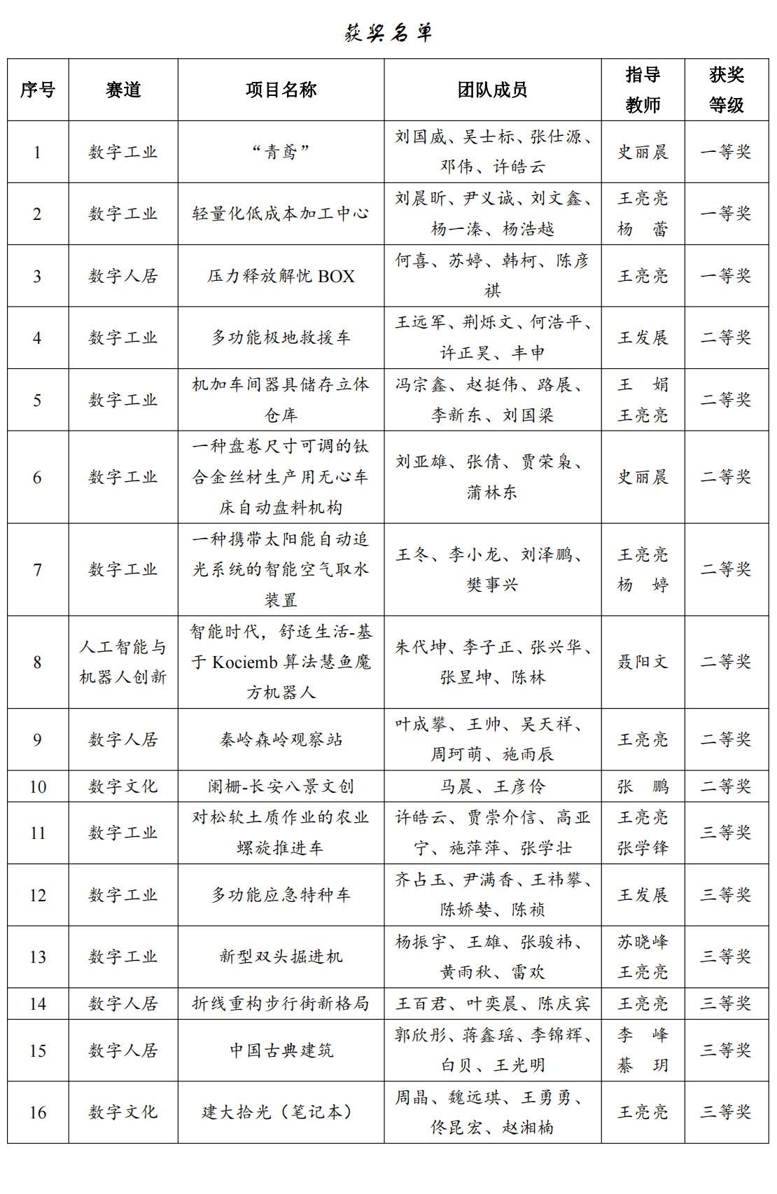 12月11日,第十四届全国三维数字化创新设计大赛(简称:全国3D大赛)年度总决赛颁奖盛典顺利闭幕,我校学子斩获国赛一等奖3项、二等奖7项、三等奖6项,我校荣获优秀组织奖,获奖数量位列陕西第一。