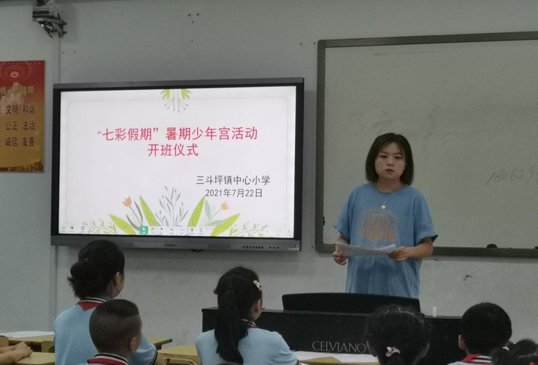 2021年7月22日,雷电竞ray官网机电学院赴湖北省宜昌市夷陵区“情暖童心”暑期社会实践团于三斗坪镇中心小学进行的七彩假期少年宫正式启动!三斗坪镇中心小学办公室副主任黄婷婷出席了此次开班仪式。