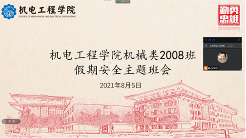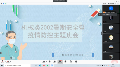 8月4日,2020级辅导员任延欢于腾讯会议线上召开疫情防控暨暑期安全稳定专题会议,部署2021年暑假期间疫情防控安全工作,2020级各班级团支部书记、班长参与会议。