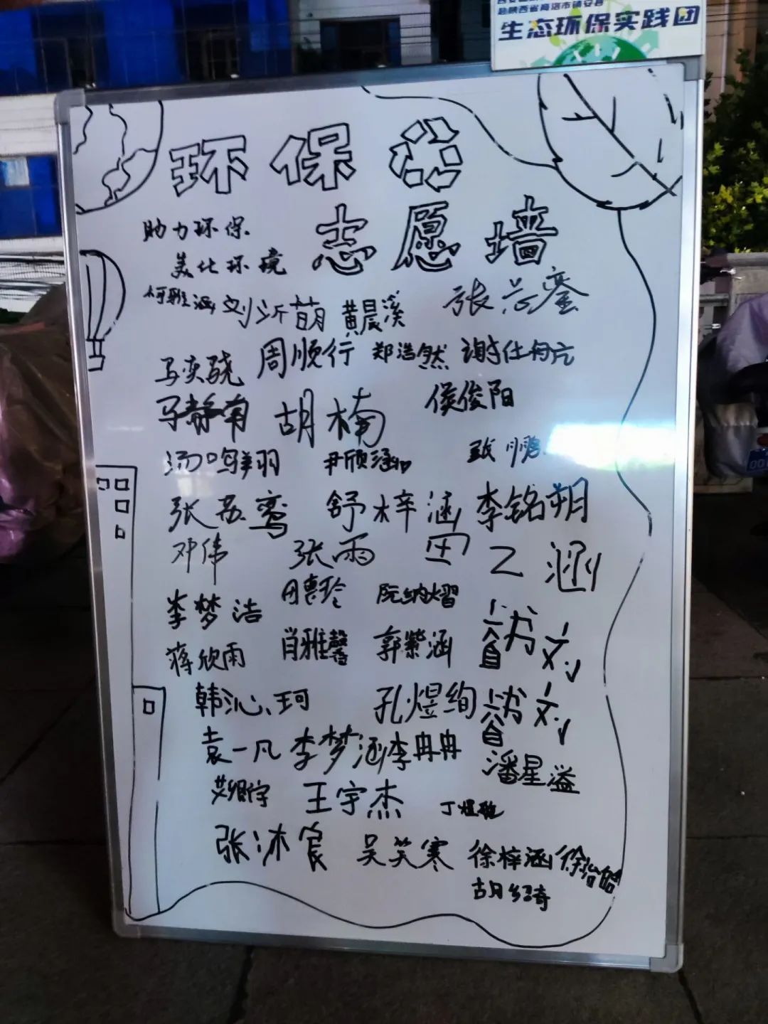 为提升镇安县居民的环保意识,营造良好的社区环保氛围。实践团于8月2日在镇安县中心广场开展趣味环保活动,将垃圾分类知识、绿色低碳、节能环保等政策理论融入“有奖答题”、“沙包分类”、“志愿签名”三个活动环节,以轻松、贴近生活、富有吸引力的方式,深入传思想、传政策、传文化,实践团号召参与者用“绿色”的实际行动去影响周围的人,活动现场气氛火热,当地年轻居民热情高涨,踊跃参加。通过实践团成员的耐心指引,参与者对垃圾分类知识都有了更具体的理解,自发在志愿墙上签下姓名,自愿践行环保理念。
