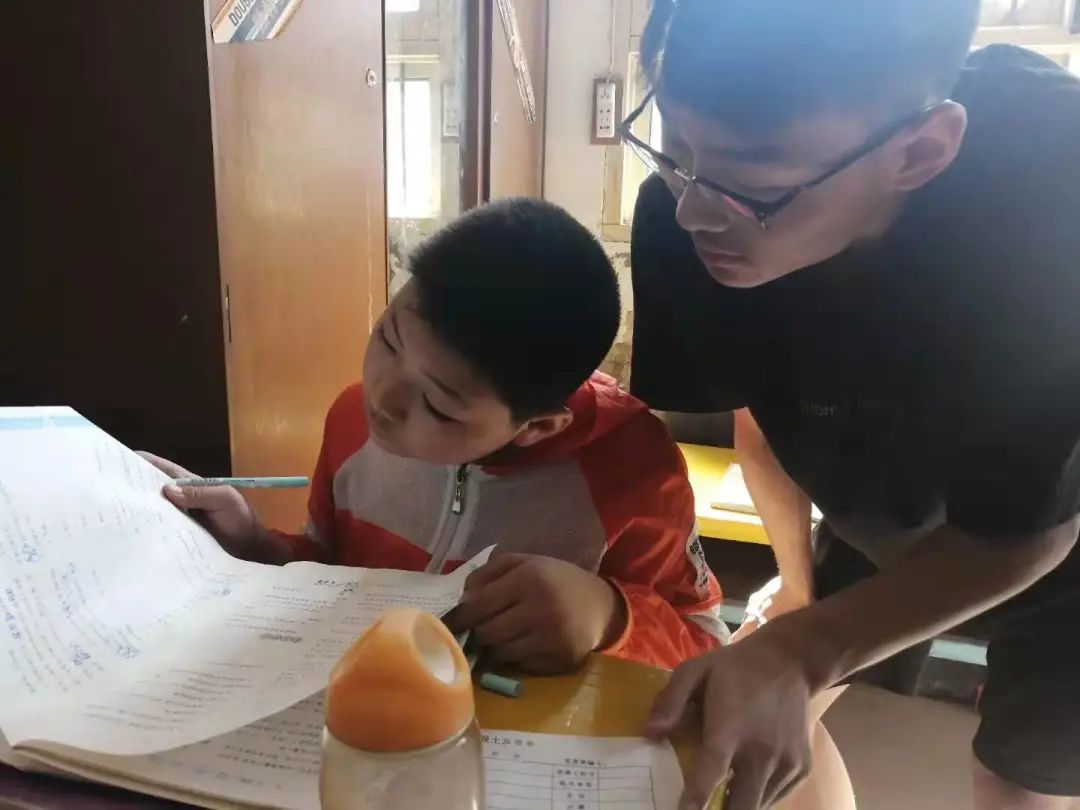 早上,实践团给孩子们进行课程讲解以及课后辅导,为孩子们修改作业和讲解问题,实践团的每个成员都过了一把当老师的瘾。