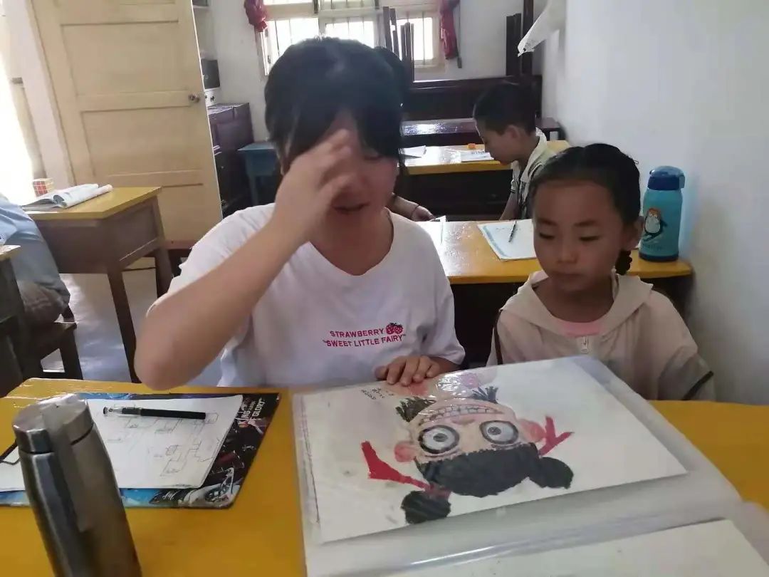 下午,由于天气闷热,教室里只有一把风扇,孩子们无心学习,所以实践团给孩子们安排了游戏的时间,教他们玩魔方、画画以及折纸等,看着每个孩子脸上洋溢着开心的笑容,实践团每个人的心里都觉得暖暖的,既充实又开心。