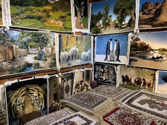 此次实践团参观调研伊犁喀赞其老城区新疆特色手工花毯供应店,店主是伊犁本地的维吾尔族大叔,买买提大叔热情的为实践团成员讲解了这些地毯的种类特点,以及制作地毯的详细流程。由于疫情防控需要,实践团未能如愿参观采访伊宁市手工地毯生产基地,但是实践团却了解到了新疆地毯的丰富种类以及映射的多样文化。