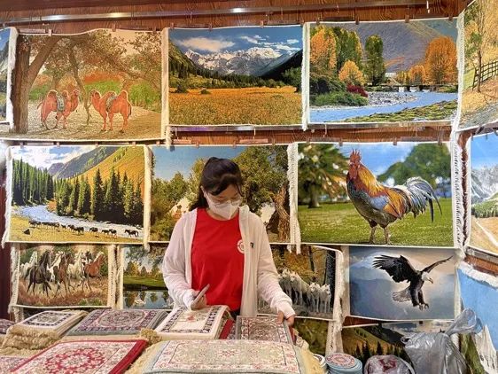 新疆手工花地毯见证着绚丽多彩的民族文化,同时也向人们展示了新疆人民积极乐观的生活态度。实践团有幸成为这一文化的见证者和传播者。