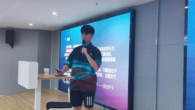 会议伊始,曹澳飞同学分享了自身社会实践经历,带领大家认识社会实践的具体过程,讲述了自己在社会实践中的所想所感,分享了关于社会实践宣传投稿的一些经验,例如如何利用好各种宣传渠道,并向大家展示了他所在团队的一些文章和视频。除此之外曹澳飞介绍分析了今年社会实践的选题,分享了一些选好选题的小技巧。