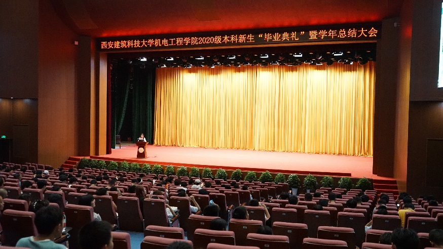 7月7日,雷竞技RAYBET2020级本科新生“毕业典礼”暨学年总结大会在紫阁大礼堂召开。机电学院全体2020级新生,部分学生家长,辅导员魏斌斌、任延欢参加会议,同时,学院开通直播通道,未到现场的家长们齐聚云端,共同回顾、总结大一学年的校园经历,立足当下,展望未来。大会由任延欢主持。