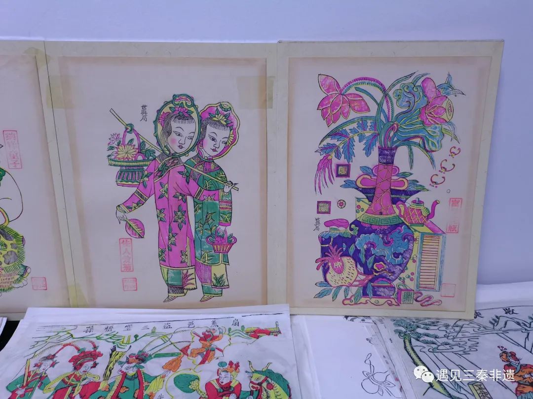 负责人讲解道,凤翔木版年画的题材形式还包括门画、风俗画、戏剧故事、窗花等。