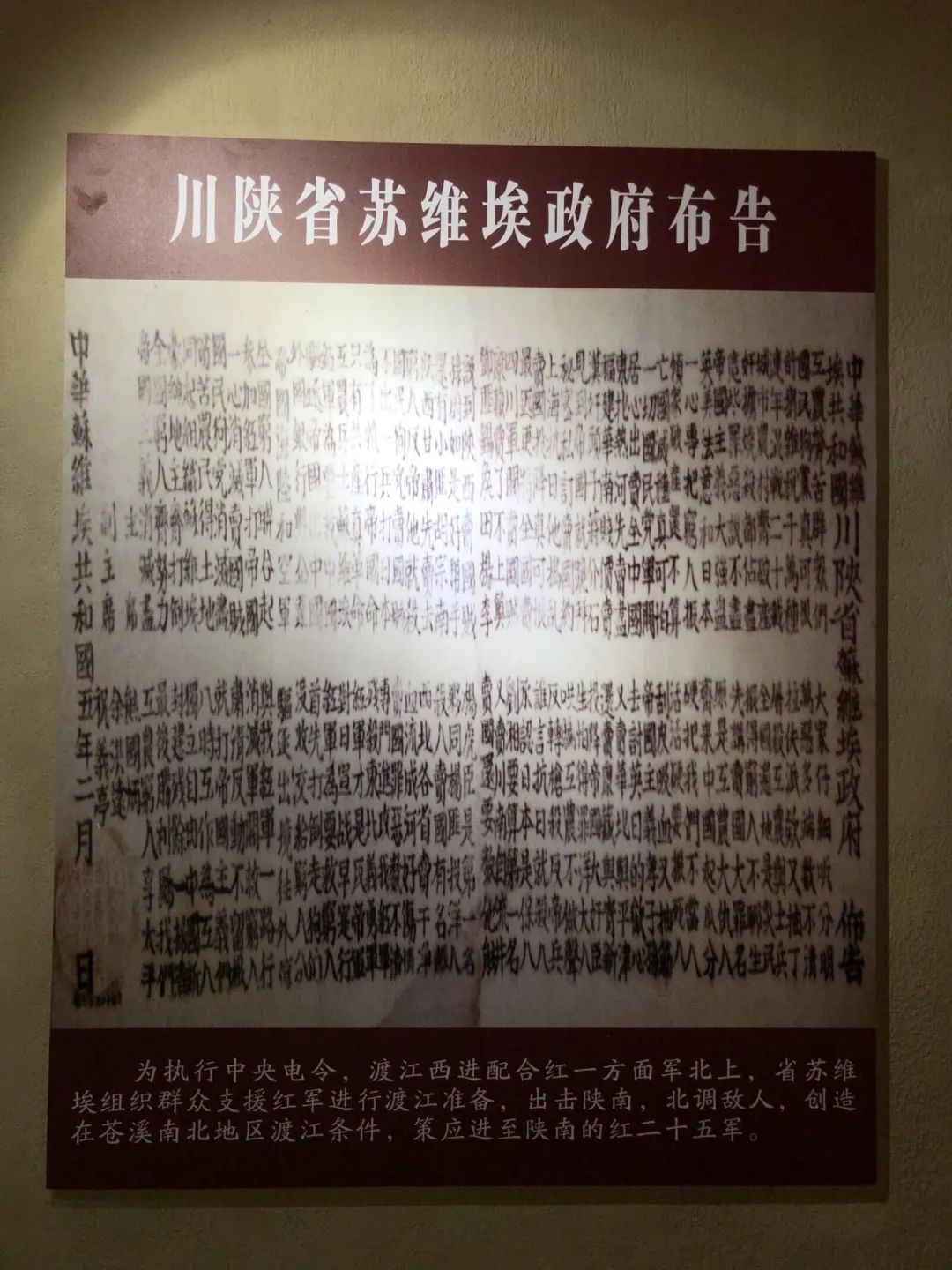 图3(实践团成员观察川陕省苏维埃政府布告)