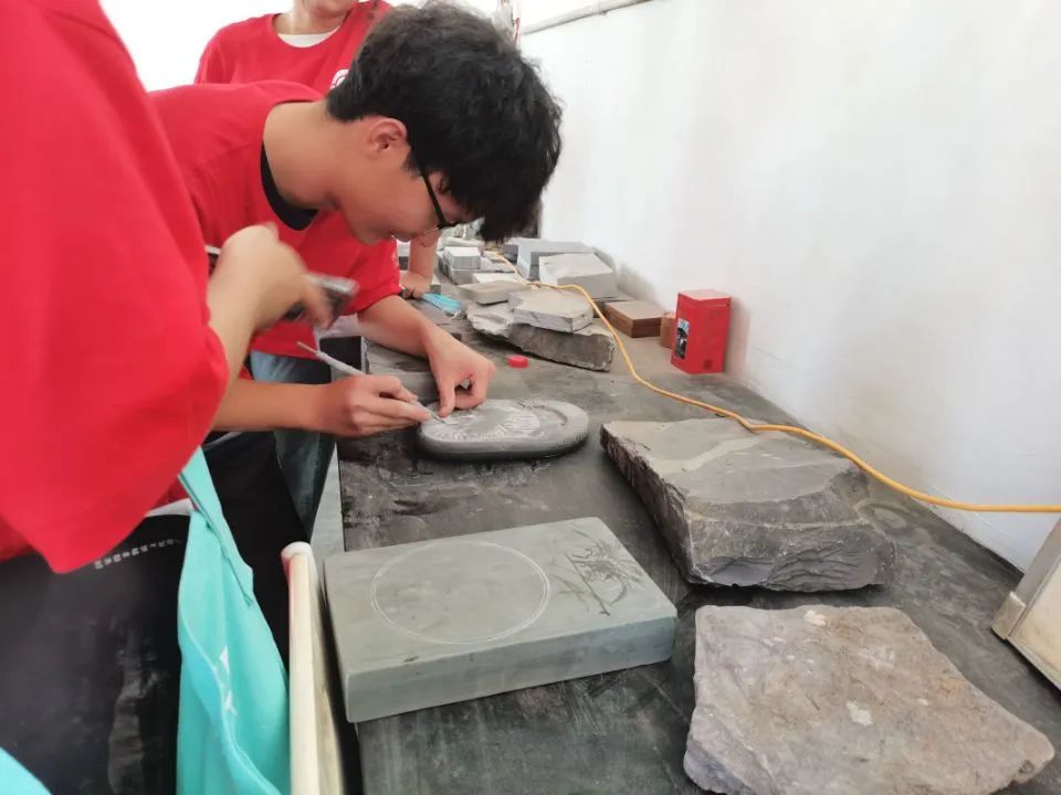 随后,实践团队跟随讲解员来到了易水砚的制作工厂,参观学习了易水砚的制作工艺,从选石、设计、雕刻、磨光、铭金敷彩、装帧等道道工序亲身实践,体会砚台制作的技巧性和困难,切身感受到易水砚的制作需要平心静气,一点一滴。易水砚不仅仅是一个工艺品的制作,更是修身养性的过程,值得发扬与传承。