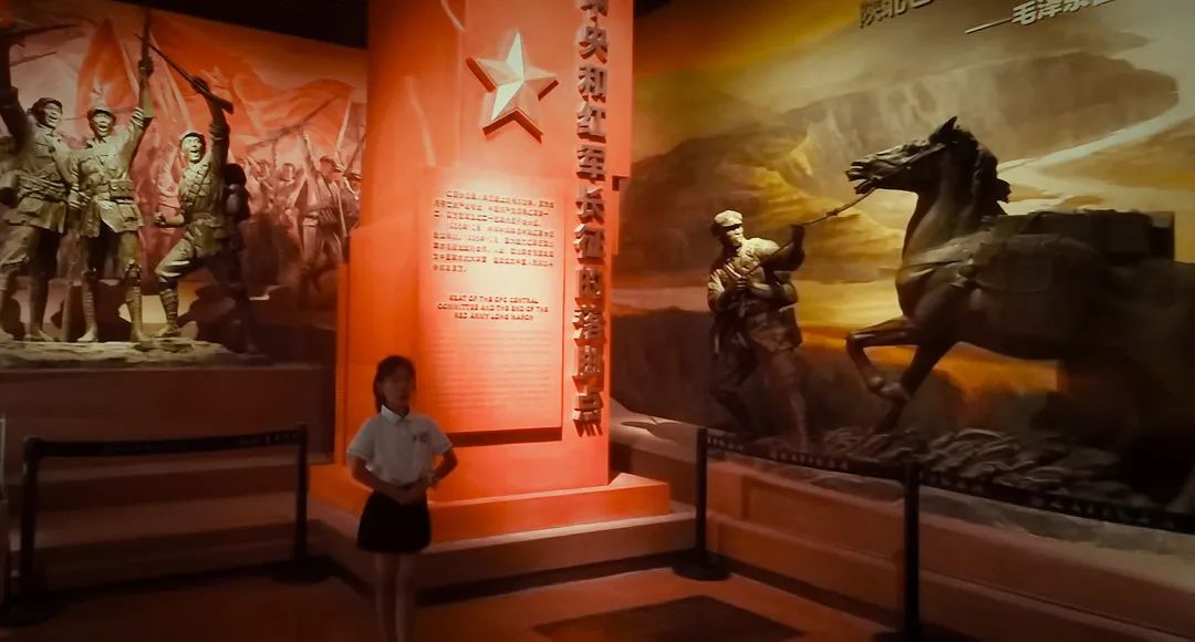 进入场馆展示中心,团队遇到了几位身着校服,站姿端庄的小学生,他们一个个精神饱满,字正腔圆地为游客解读着场馆内充满红色记忆的展示品,这样对新生一代的教育方式,使团内每一位同学不由地心生钦佩。