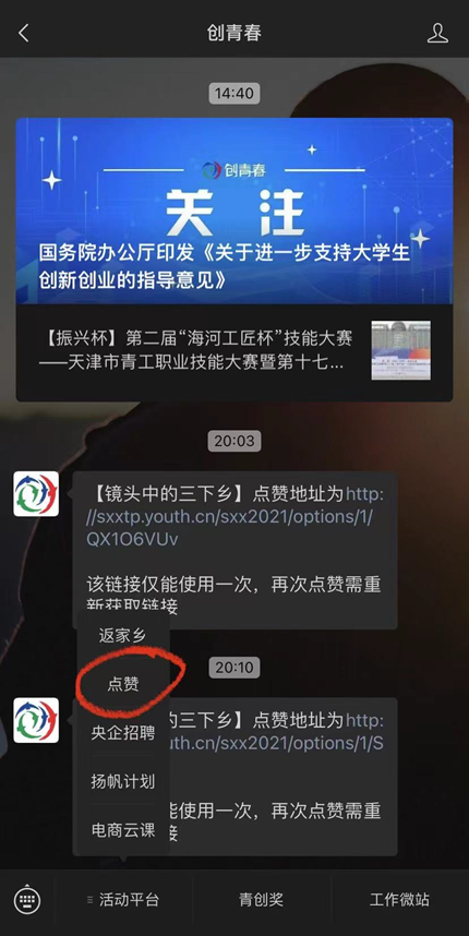 1.打开微信公众号,搜索“创青春”并关注