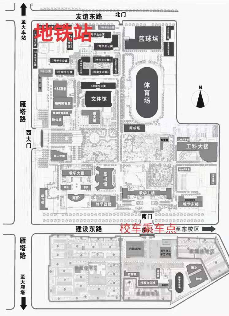 注意:迎新期间,学校会在火车站出站口安排工作人员,引导大家乘车前往草堂校区。同时雁塔校区也安排了迎新车辆,前往草堂校区。因此前往草堂校区的萌新们可以分别在火车站接站点及雁塔校区内免费乘车前往草堂校区哦!