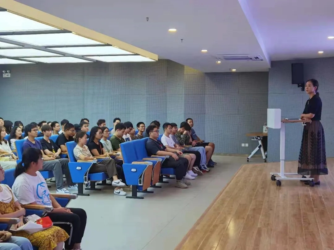 任斐然首先向21级研究生新生介绍了学校的环境和自己的工作职责,并从以下四个方面表达了对新同学的期许:
