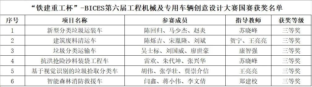 由中国工程机械工业协会主办北京天施华工国际会展公司承办的“铁建重工杯”-BICES第六届工程机械及专用车辆创意设计大赛评审工作已经圆满结束,大赛共评出获奖作品42组,其中学生组一等奖2个、二等奖4个、三等奖25个;社会组一等奖2个、二等奖4个、三等奖5个。雷竞技RAYBET“基于视觉识别的垃圾拾取分类车”“建筑废料清运车”“智能森林消防救援车”等6件作品在本次大赛中荣获学生组三等奖,同时雷电竞ray官网荣获本次大赛优秀组织奖。