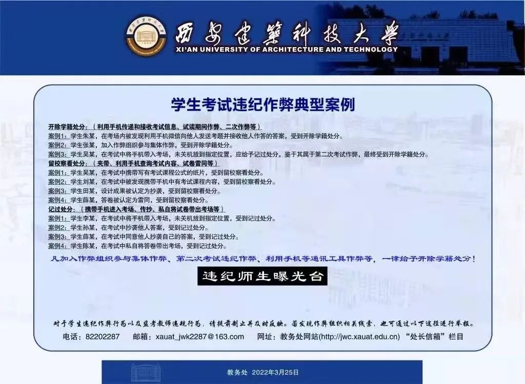 同学们,让我们共勉、互励、共进,自觉遵守学校考试纪律和有关规定,坚决杜绝考试作弊,让诚信常驻心间,用扎实的知识,向自己交一份完美的答卷,用担当的精神,为学院学风建设贡献一份力量。“千里之行,始于足下。”良好的学风、文明的考风,应当从自我做起,努力构建诚信校园。服从监考老师安排,严格遵守考试纪律,坚持诚信考试,杜绝作弊行为,弘扬诚信品质,与不良风气作斗争。