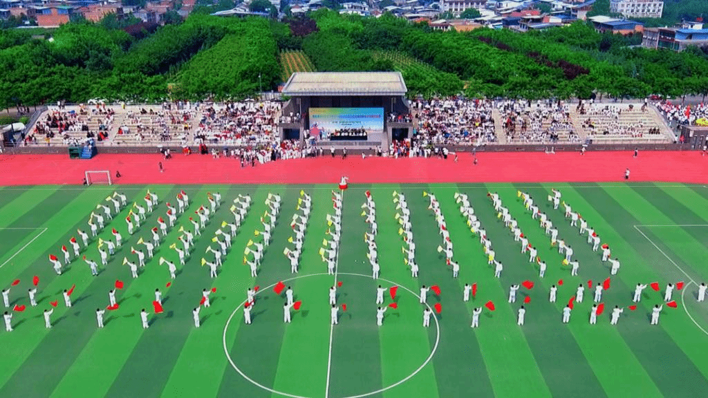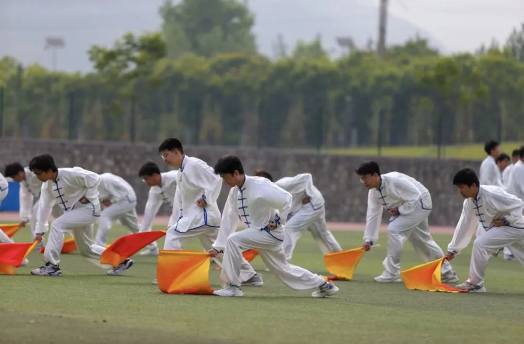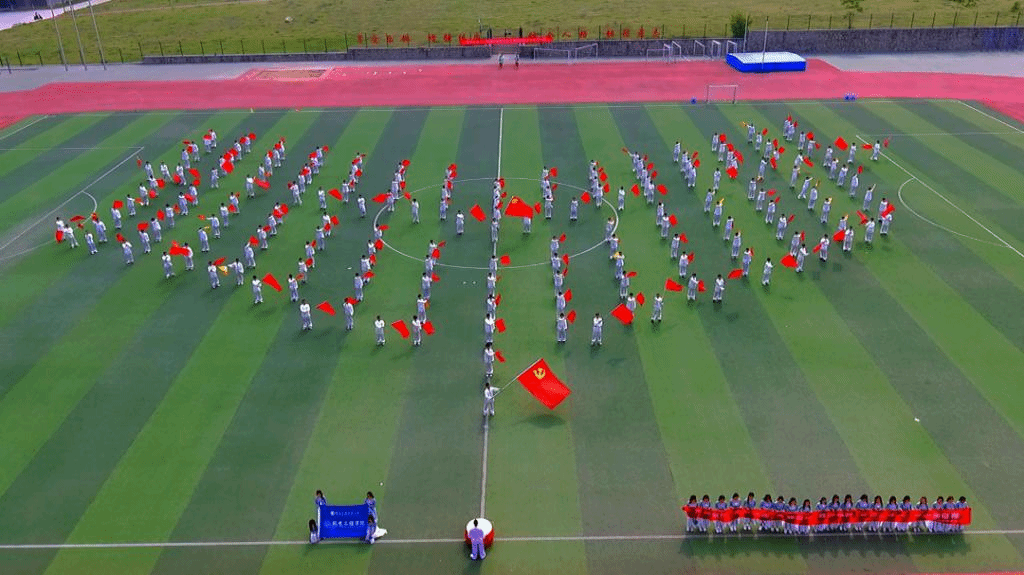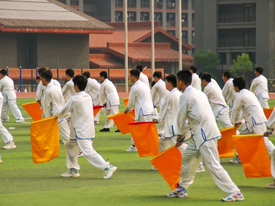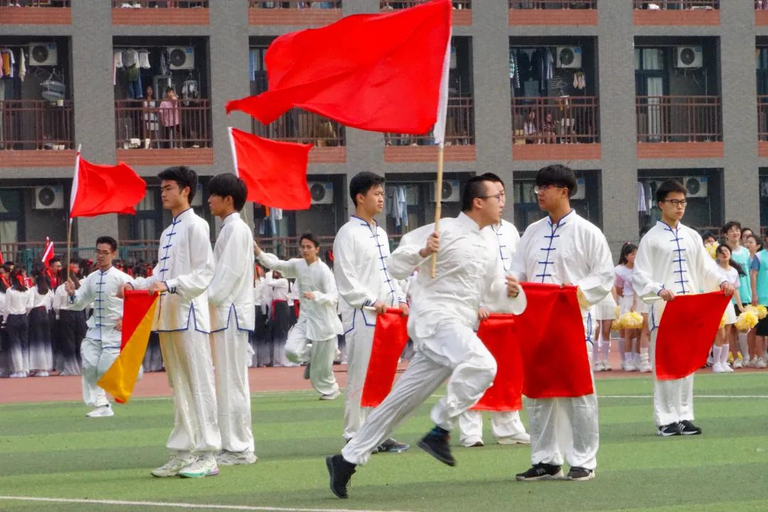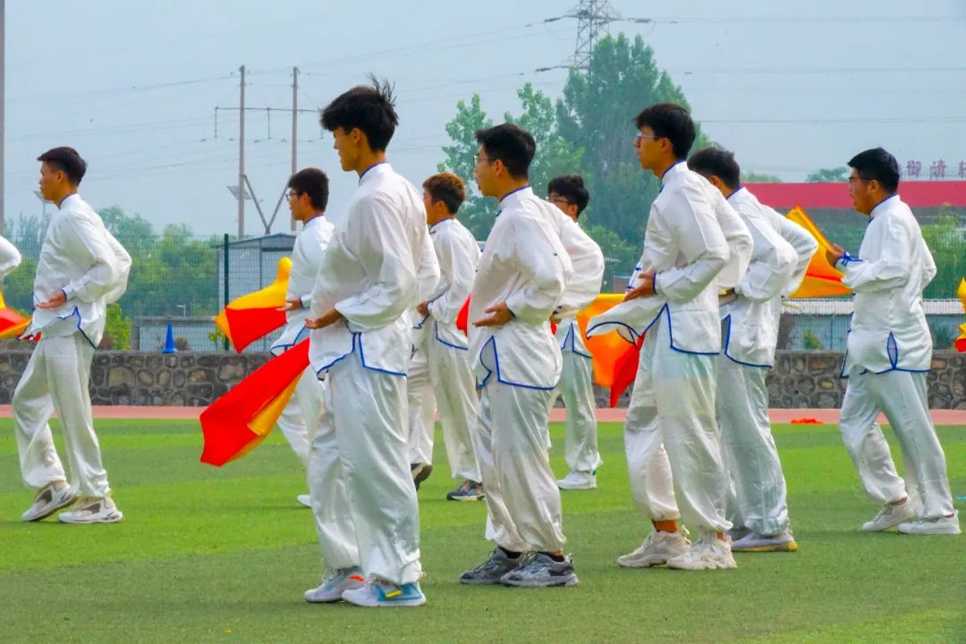 旗手展开阵列整整齐齐的奔跑和挥舞