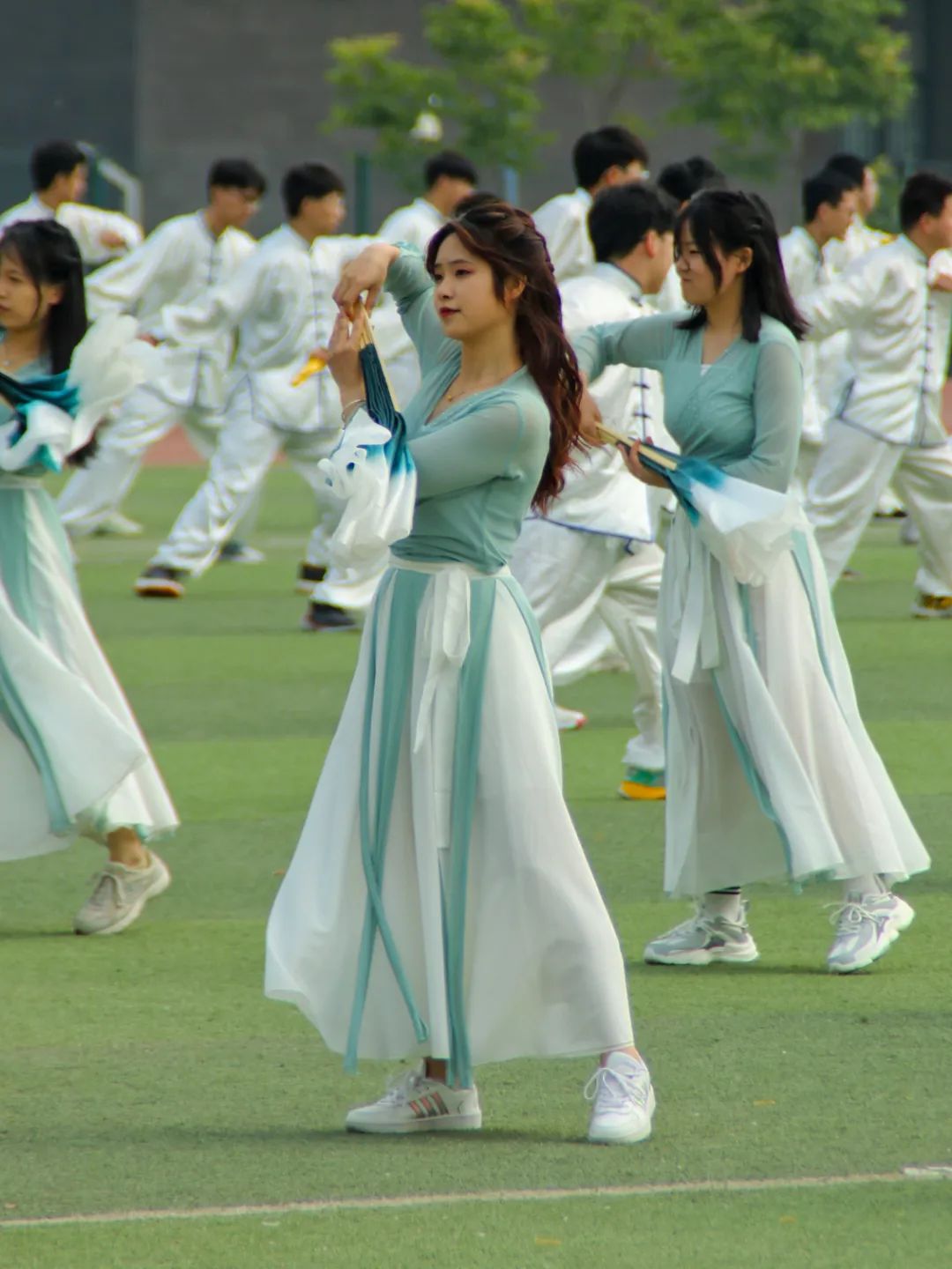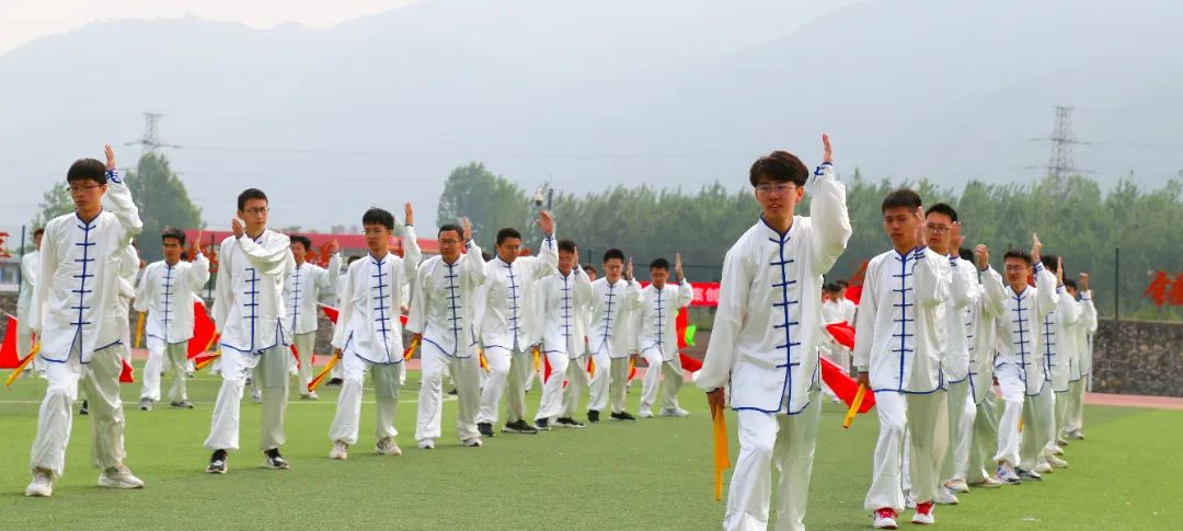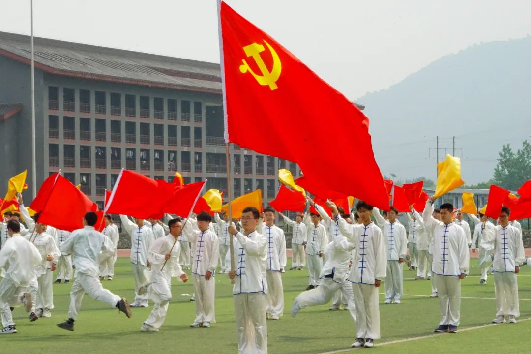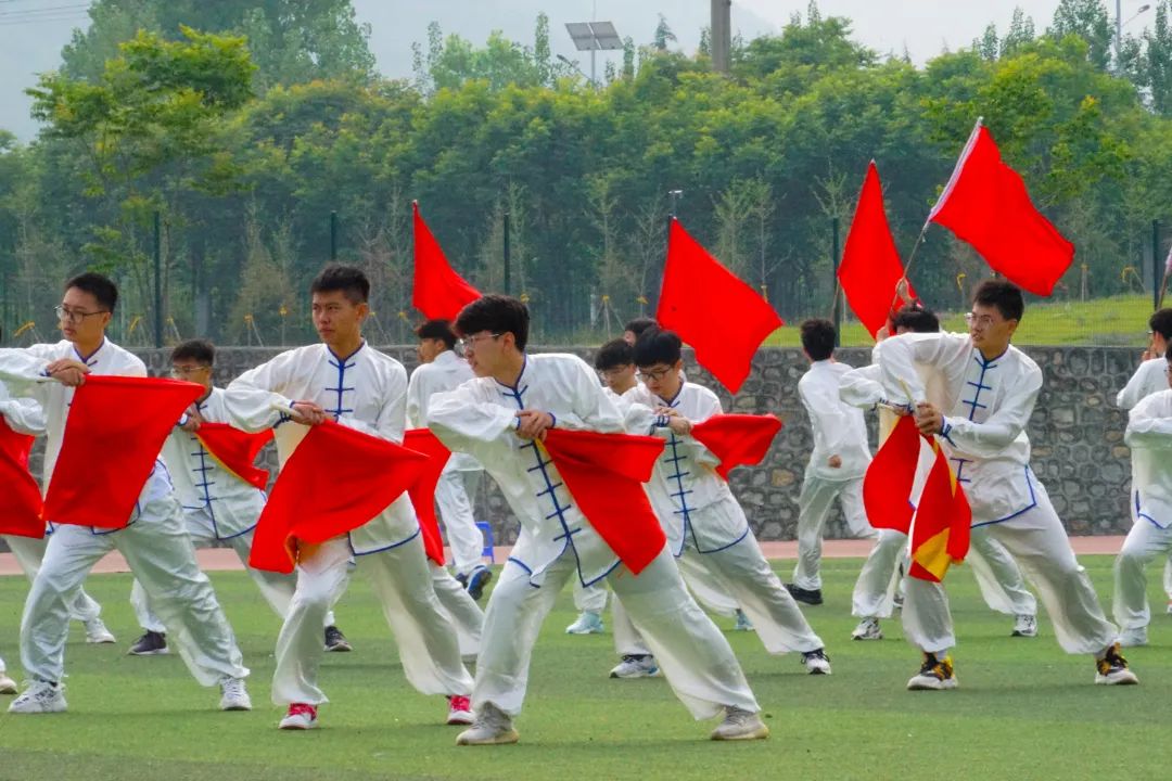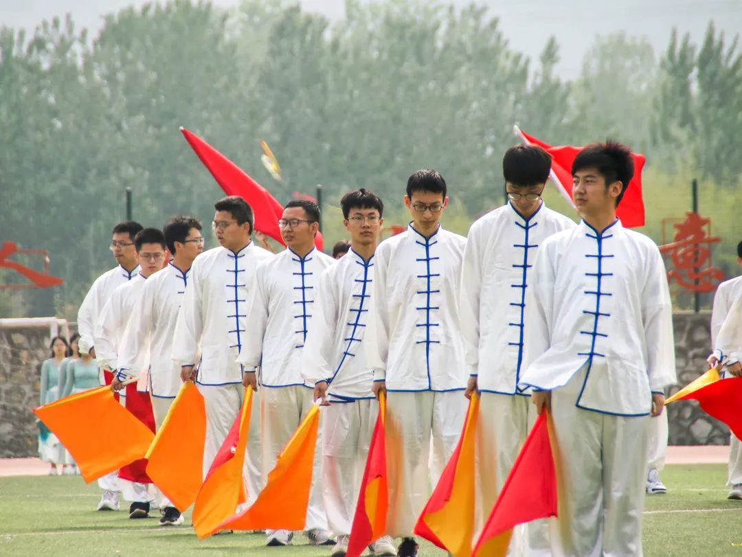 旗手展开阵列整整齐齐的奔跑和挥舞