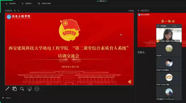 为确保学院学生全面掌握第二课堂综合素质育人系统,保证顺利上线运行,2022年4月17日,雷竞技RAYBET团委召开了“第二课堂综合素质育人系统”线上培训交流会,雷竞技RAYBET各团支部书记与学院团委学生会主要学生干部参与培训,会议由学院团委副书记任延欢主持。