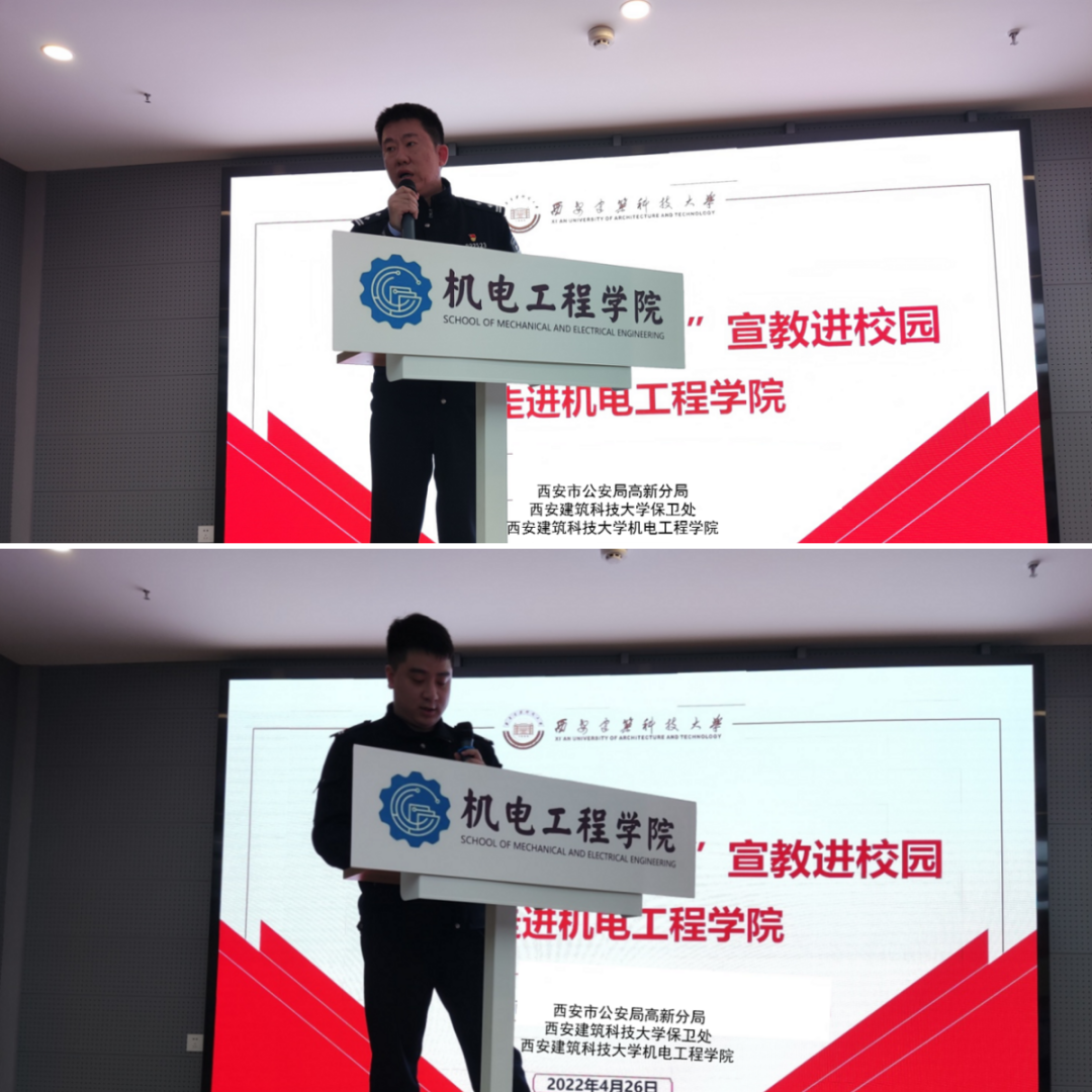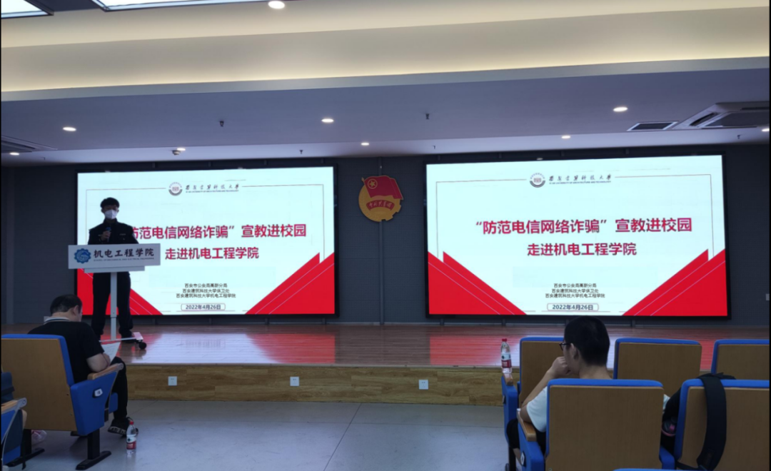 为提高师生电信网络诈骗防范意识,保护师生财产安全和合法权益,4月26日,雷竞技RAYBET于机电楼615报告厅开展“防范电信网络诈骗”宣传教育会。学院特邀请西安市公安局高新分局、草堂派出所民警为师生进行防范电信网络诈骗宣讲,学校保卫处周勇、学院学工办辅导员、各年级学生干部参加会议,会议由学院学工办主任周亮主持。