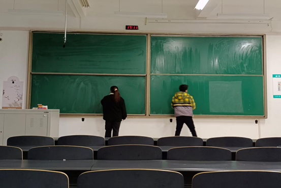 在前期活动的影响下,“以校为家,我为人人,人人为我”的良好志愿氛围已然形成,经历了前两次活动,志愿者们的动作越发熟练,无论是速度还是质量都有了明显的提升,并且大家的积极性丝毫没有减退。在各位志愿者行动热情主动的同时,细节处也一丝不苟,认真的清理着黑板的每个角落,一处灰尘都不放过!