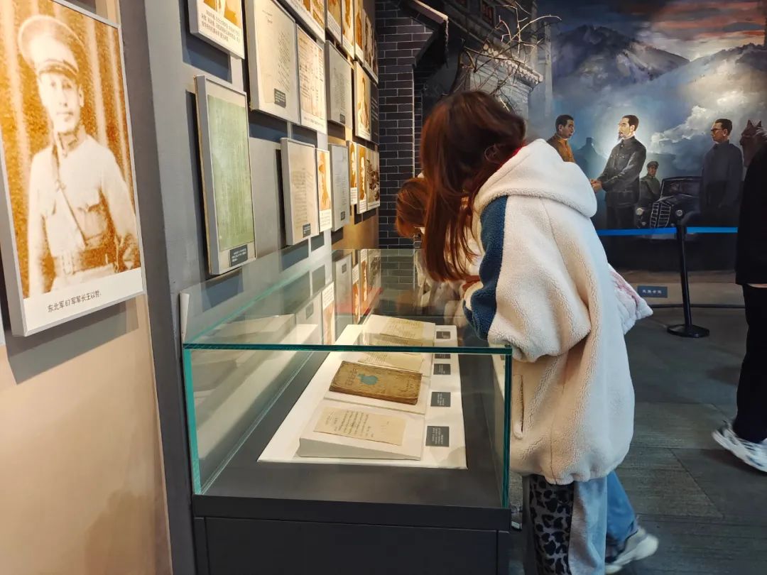 支部成员顺利抵达西安事变纪念馆。纪念馆外街道两旁高大的梧桐首先映入眼帘,遒劲的枝干将同学们引向那段峥嵘的历史。支部成员在班长和团支书的组织下有序扫码入馆,先后参观了《历史的转折——西安事变史实陈列》和《赤诚爱国无悔情——张学良将军生平陈列》等专题馆藏,充分学习并感悟了“西安事变”发生的前因后果,深刻学习感悟了张学良将军和杨虎城将军等伟大的爱国主义精神,认识到了我党在西安事变过程中发挥的重要作用。