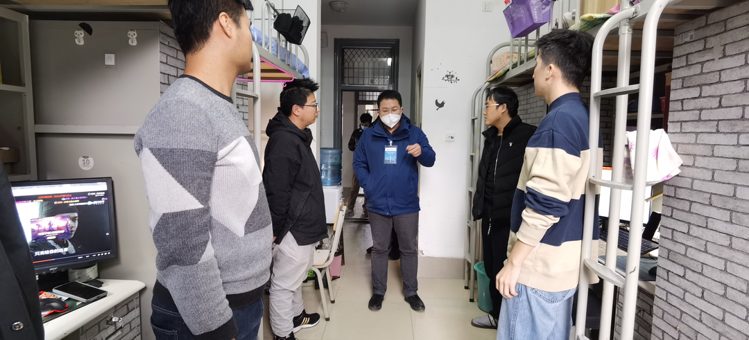 近期,西安市疫情防控形势严峻,为保障学生安全健康,将疫情防控期间学生管理工作落到实处,筑牢校园安全防线,同时疏解学院学生在封闭管理期间遇到的压力,确保疫情防控期间宿舍环境的安全。12月21日至30日,学院党委副书记、副院长、纪委书记贺伟带领学院学生工作办公室辅导员深入学生宿舍,走访慰问学生。