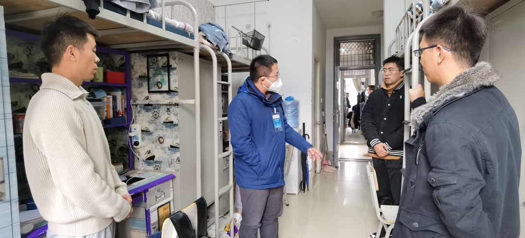 学院高度重视疫情防控工作,贺伟要求全体辅导员增强责任意识,坚决做好学生宿舍疫情防控工作,确保学生生命健康安全和校园稳定。走访过程中,贺伟与学生们亲切交谈,详细了解当前学生学习、生活等情况,重点对新冠疫情及出血热防控、宿舍卫生、冬季用电安全等方面进行详细了解,强调了树立宿舍安全责任意识及疫情期间配合学校做好疫情防控的重要性,围绕学生反馈的问题逐一进行解答和记录。他强调,在疫情严峻背景下,每一个同学都要绷紧疫情防控之弦,绝不能松懈,学校及老师都将为同学们做好一切保障工作,特殊时期,一定要佩戴好口罩,勤洗手,做好自身体温监测和上报,保持宿舍卫生清洁、不互相串门,注意个人防护,按时参加线上学习。