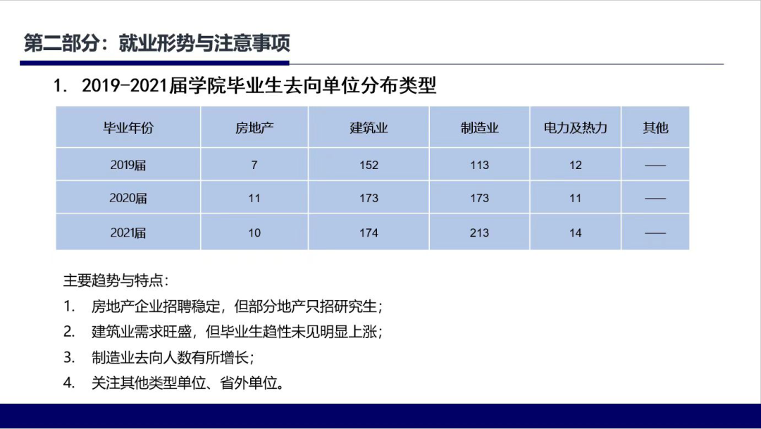 接下来,面对即将步入毕业班的2019级本科生,孙浩向各位家长详细汇报了雷竞技RAYBET本科生就业形势,就近3年的就业数据向家长进行分析,同时分析了近3年学院研究生就业相关数据,以帮助家长正确看待大学生就业现象,消除家长的焦虑。随后,孙浩就全国研究生招生考试的形式,以及学院近5年考研数据进行分析,帮助考研学生及家长理性选择考研院校,合理安排考研时间,并希望同学们取得较好的考研成绩。