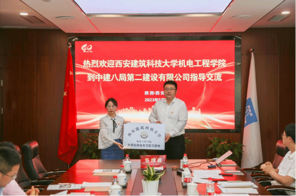 座谈会上,中建八局第二建设有限公司技术质量系统负责人韩璐对学校的到访和交流合作表示热烈欢迎,并表示公司与学院已持续建设了良好的合作基础,希望以本次交流座谈为契机,积极探索校企合作、人才培养、就业实践、学术科研等方面的有效途径。安装公司党总支副书记、执行总经理屈真从企业发展、业务范围、校企合作、重要科技研发领域与成果等方面介绍了公司情况。参会人员共同观看了中建八局二公司宣传片及党建工作宣传片。