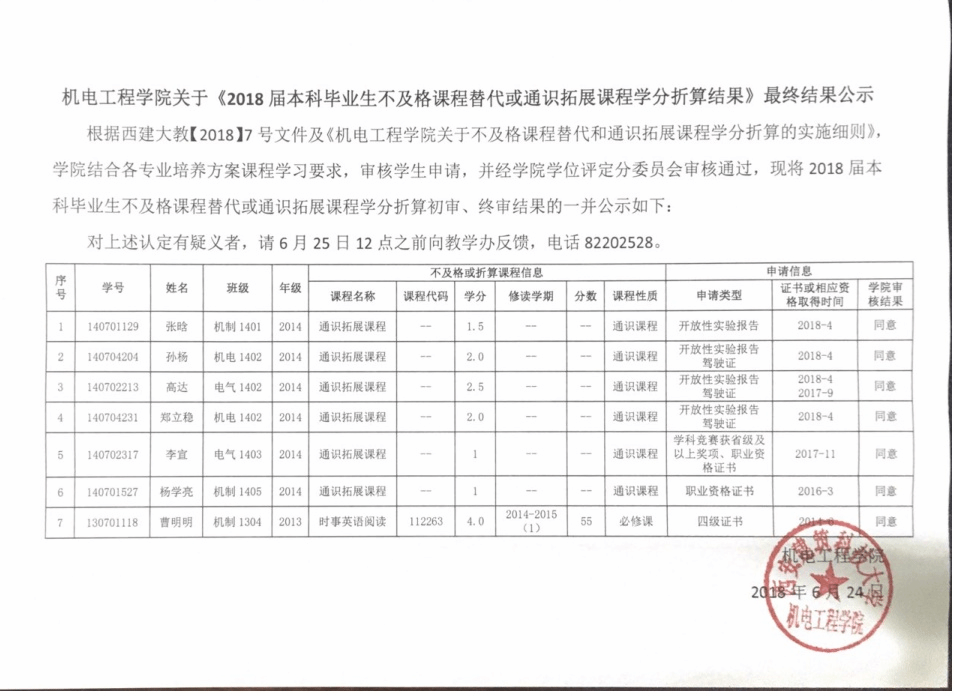 雷竞技RAYBET关于《2018届本科毕业生不及格课程替代或通识拓展课程学分折算结果》最终结果公示