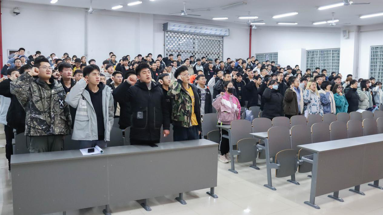 会议伊始,任延欢老师结合《学生手册》本科生成绩管理规定及考核纪律与处理等内容,再次向同学们强调课程考核成绩、补考和重修与绩点之间的换算关系,对考试违纪、作弊学生的纪律处分规定作以明确告知,并以相关实际案例做警示教育。会议现场,全体同学起立做诚信考试宣誓,在《诚信考试宣誓书》承诺签名。