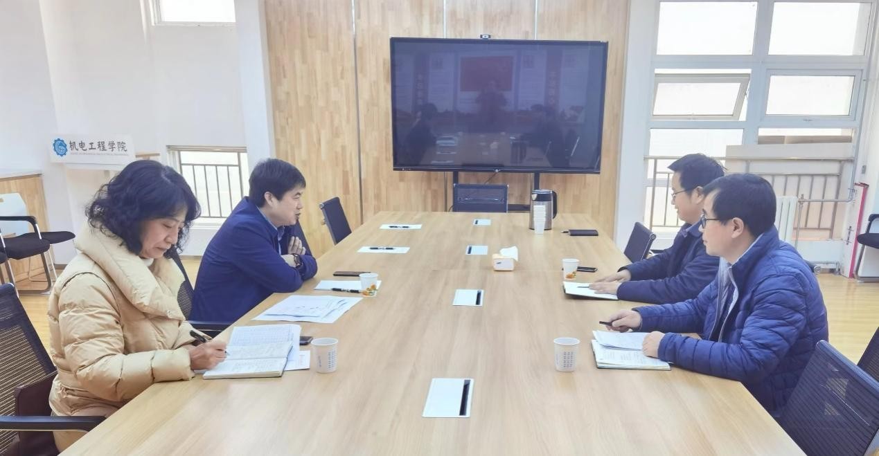 2 月 8 日下午,校党委常委、副校长雷鹏到机电学院调研指导 2023 年国基金申报工作,科技处副处长瞿伟陪同调研。机电学院执行院长朱丽华、副院长李玲参加了调研会,会议由朱丽华主持。