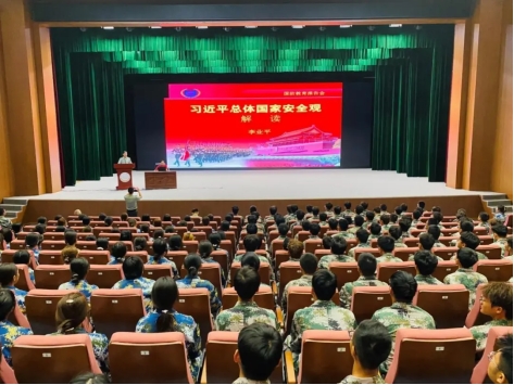 为强化学院学生的国家安全意识,弘扬爱国主义精神,军训旅六营于2024年9月7日上午在紫阁大礼堂参与了国防教育报告会,西安陆军学院政治理论教研室主任、少将教授李业平出席会议,并作《习近平总体国家安全观》主题报告。